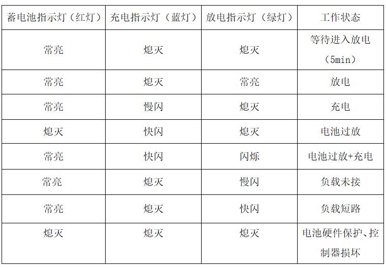 a、所有指示燈不亮,有可能電池過放,電池硬件保護(hù),可第二天白天看指示燈狀態(tài),如紅燈常亮,藍(lán)燈閃爍,表示燈具正常充電,則燈具正常;如第二天白天看指示燈狀態(tài)均不亮,燈具有問題,需更換燈具配件。