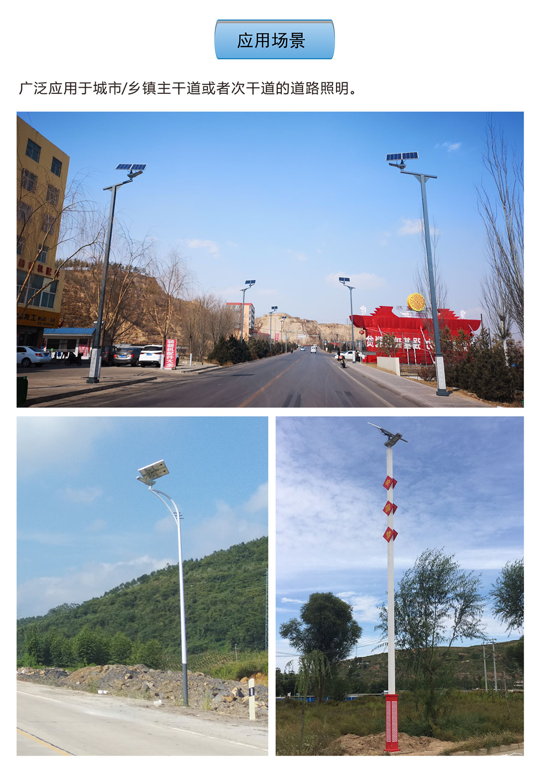 駿馬燈屬于中高端定位的中大功率太陽能智慧路燈,被廣泛應(yīng)用于城市或鄉(xiāng)鎮(zhèn)主干道或次干道,以及工業(yè)園區(qū)、廣場(chǎng)等場(chǎng)景。